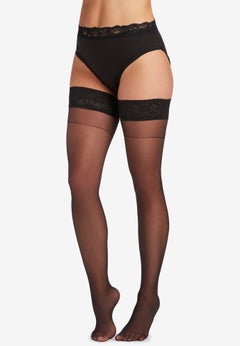 What elevates the plus size socks and pantyhose you find here is more than just the fun patterns and flattering styles available. It’s also the details you’ll appreciate from the first wearing. Like seamless designs that won’t rub against your skin. Like breathable knit fabrics that provide worry-free comfort. Like the fit you get from our socks, which are all knit to a true D-width, so your toes remain comfortable all day long in your wide width flats. Like the silky smoothness of our plus size pantyhose, enhanced by a breathable cotton gusset and a reinforced toe that resists wear and tear. Get some comfortable ankle socks to wear with your sneakers, and some knee-high socks to wear with your favorite boots. For slimming support and a smooth, beautiful silhouette, get our plus size pantyhose with built-in shapewear.