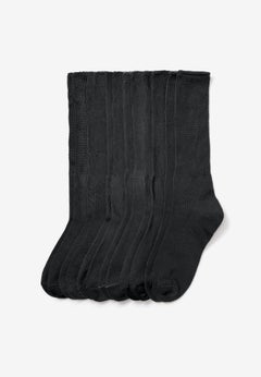 Plus size hosiery and socks, much like bras, are the unsung heroes of fashion for curvy women, providing both practical comfort and a touch of style. Add color and warmth to your little black dress with plus size tights in a variety of hues, patterns and thickness. Combine a great pair of fishnet tights with fashion boots and a pencil skirt for an edgy look that works for the office or a night out. As important as plus size women’s socks and hosiery are for completing your wardrobe, they’re equally important for warmth in cooler months. Looking for knee highs to wear under dress pants or jeans? You’ll find them at Catherines in a variety of colors and patterns. All the plus size hosiery you want is here, from supportive compression socks that aid circulation and provide relief to tired and achy legs, and plus size tights in sheer, opaque, bright and bold options, to comfortable slipper socks, perfect for relaxing after a long day.