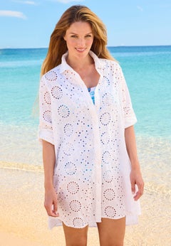 Prefer a more casual and versatile coverup? Our button-front swim coverups are a convenient throw-on-and-go option with a relaxed silhouette and side slits for more breathability. And for a post-swim piece, our absorbent hooded terry and sleeveless coverups are great for drying off after the pool or enjoying a walk down the beach.