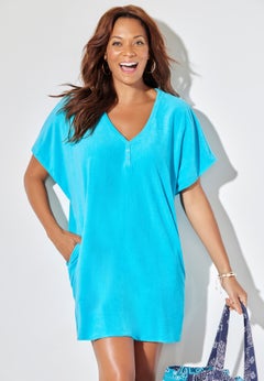 Prefer a more casual and versatile coverup? Our button-front swim coverups are a convenient throw-on-and-go option with a relaxed silhouette and side slits for more breathability. And for a post-swim piece, our absorbent hooded terry and sleeveless coverups are great for drying off after the pool or enjoying a walk down the beach.