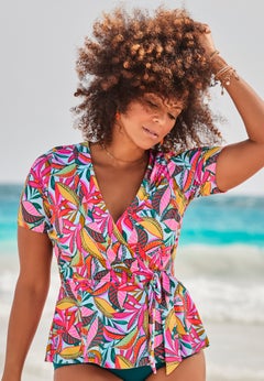 From classic sporty styles to chic statement-making pieces, Catherines has got you covered with our selection of plus size swim tops. You’ll find a range of necklines and summer-ready patterns to choose from, and everything is purposefully designed to accentuate your best assets and provide additional coverage exactly where you need it.
