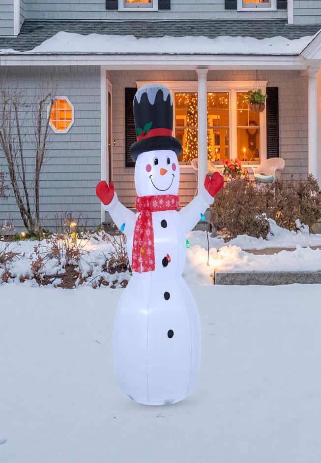 Bring big smiles and winter cheer with the 8-foot Inflatable Snowman. A joyful addition to lawns, porches, or entryways, this snowman lights up the season and spreads holiday magic to all who pass by.