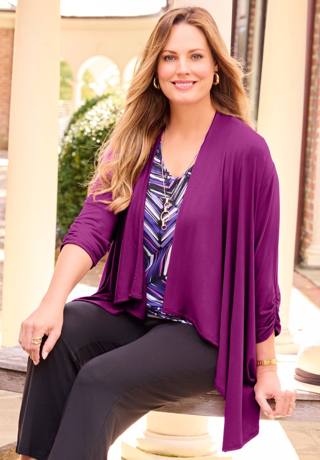 Item Number: 1061140Lightweight, fluid and ready to take on the day. A perfect finish over all of our AnyWear Collection pieces. Shirring detail at the shoulders and a floaty, cascading front add texture, movement and style. Mix and matchable, and so packable. Pair back to our AnyWear Tank and Anywear Wide Leg Pant for a complete AnyWear look!