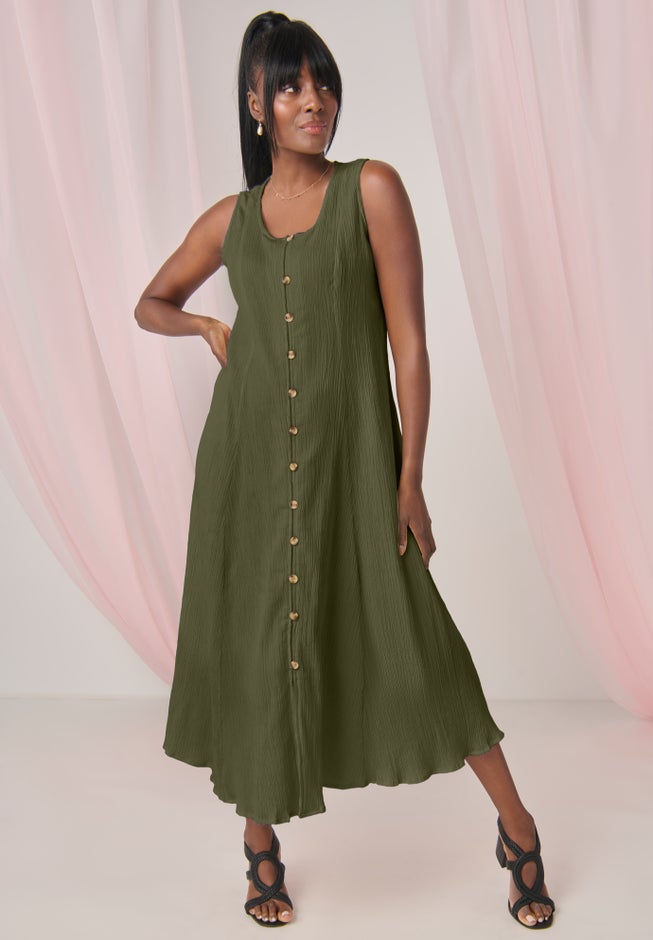 An effortless, summer-friendly dress in breathable and airy gauze. Complete your look with espadrilles.