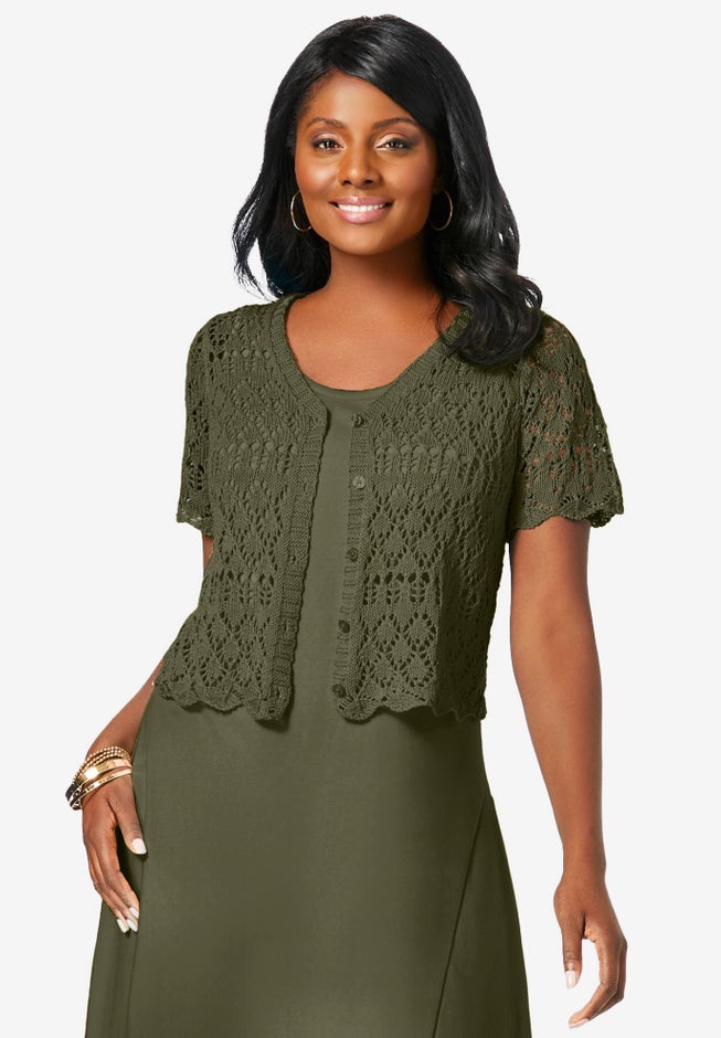 This simple yet elegant crochet shrug is the perfect layer with all your sleeveless dresses. An airy, stylish must-have you'll reach for time and again.