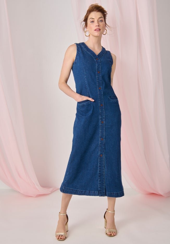 Denim Button Midi Dress