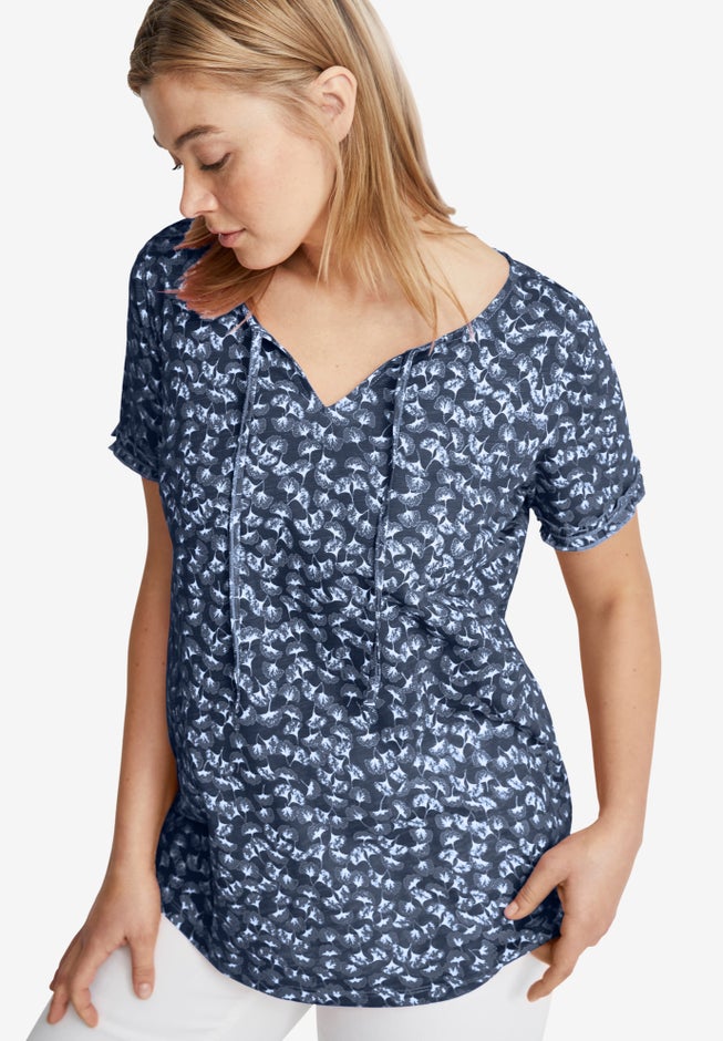 An everyday tee with a femme ruffle trim at the sleeve makes this a breezy addition to your warm-weather rotation.