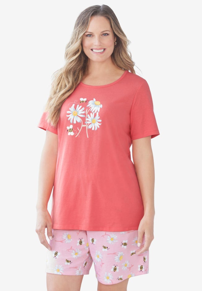• Tee features stylish side slits at the hem, adding a playful touch to your sleepwear.