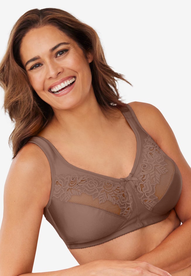 Reduce your bust by one cup size in our beautiful Lace Minimizer Bra. It offers full coverage and ultralight compression for a smoother look under clothing.