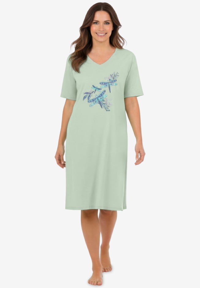 Sleep comfortably with this flowing sleepshirt. V-neckline with self-binding around neck and short set-in sleeves. Fun graphic print and side seam pockets.