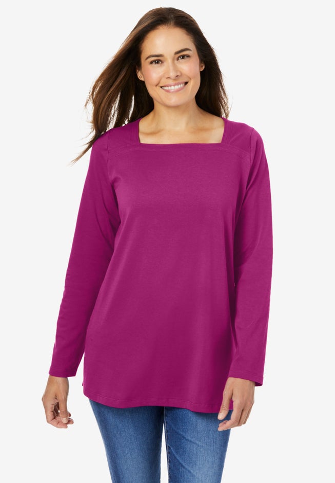 Part of our much-loved Perfect Tee collection, this long sleeve style has a unique square neck that frames the face and is a fun twist on an everyday tee. Grab it and go – it goes with everything in your closet!