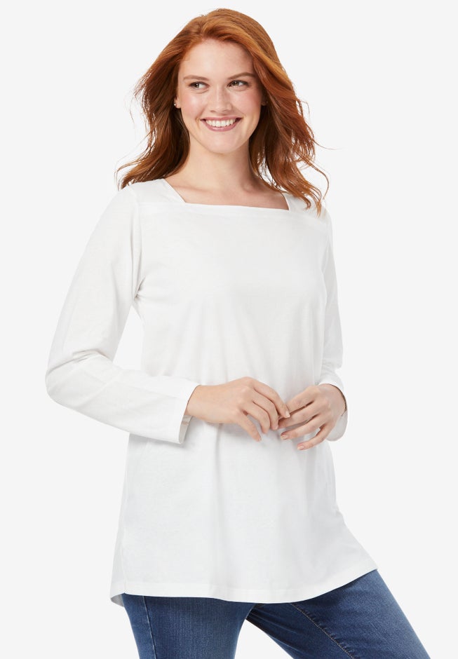 Part of our much-loved Perfect Tee collection, this long sleeve style has a unique square neck that frames the face and is a fun twist on an everyday tee. Grab it and go – it goes with everything in your closet!