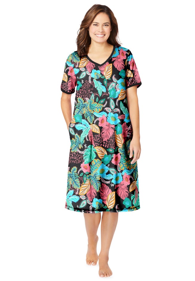 • Enjoy ultimate comfort with this delightful lounge dress featuring short sleeves and V-neck.