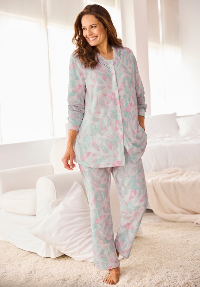 Enjoy effortless comfort in the Only Necessities® Snap-Front. Pajamas, designed with everyday ease in mind. Created for plus-size women, this pajama combines practicality with comfort—perfect for relaxing at home or winding down at the end of the day. Lightweight and breathable for year-round wear and comfortable coverage for lounging or sleeping.