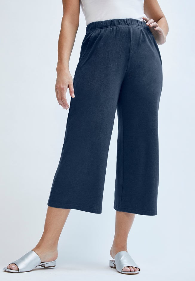 Our soft knit in a comfortable, cropped wide leg silhouette. Pair these flattering, grab-and-go bottoms with a knit tee and denim jacket for easy, all-day wear.