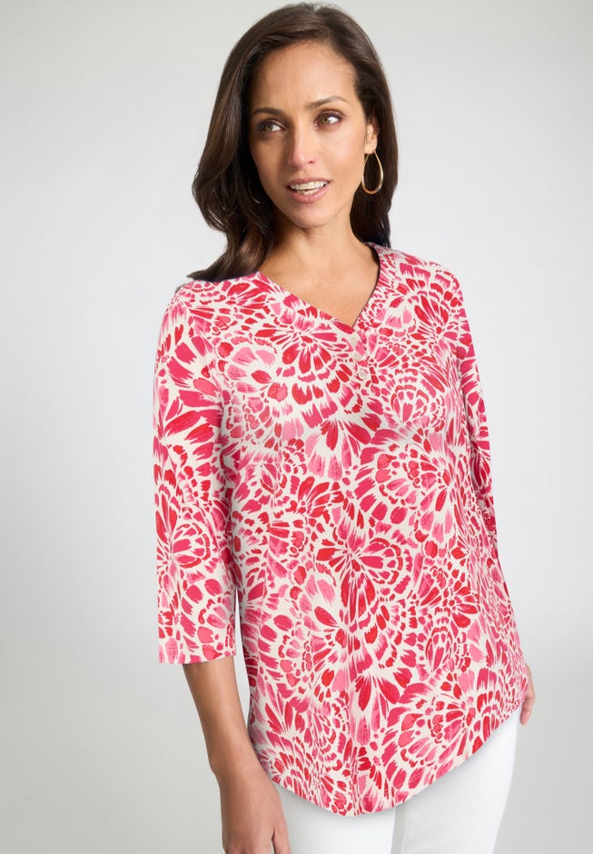 Feel perfectly put-together in this elevated everyday top. It flatters with a straight silhouette and Henley neckline with functional buttons. It partners with your favorite jeans for a casual-chic look.
