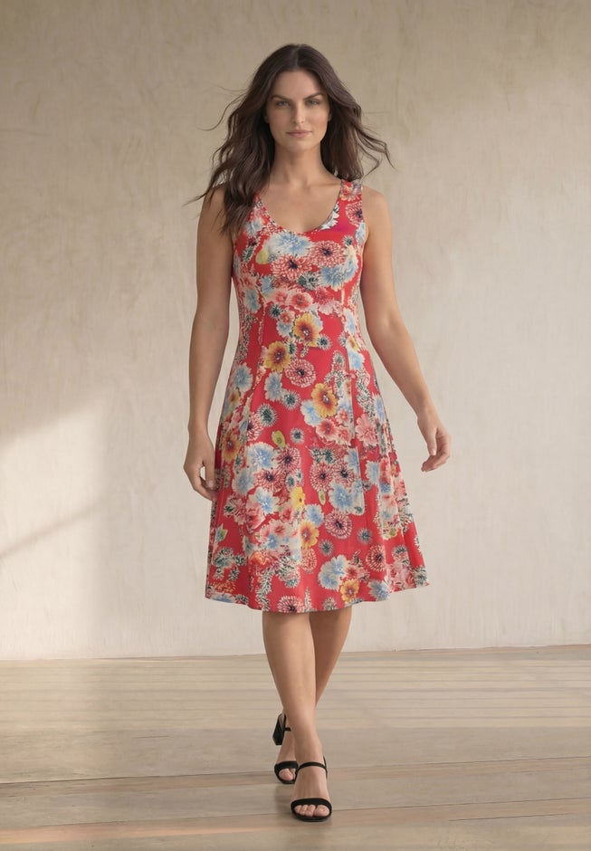 Stretch Jersey Knit Sleeveless Scoop Neck Fit and Flare Dress