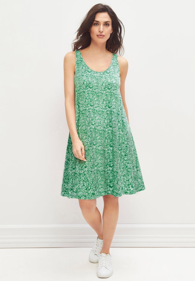 Stretch Knit Tank Crossover Back A Line Dress