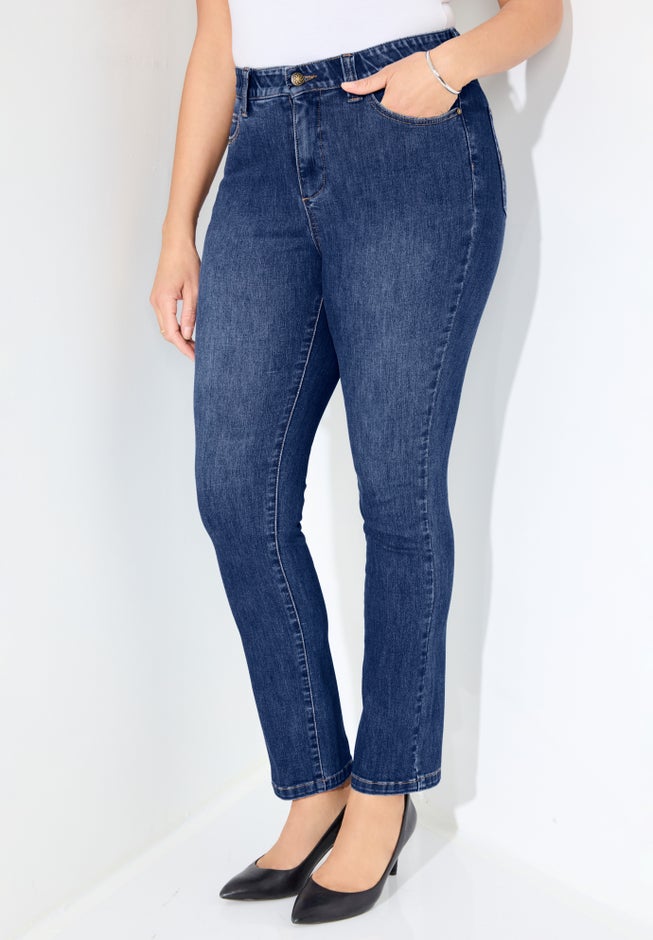Item Number: 1107129Call it a confidence-booster! These straight-leg jeans were designed with stand-out features to have you looking and feeling your best, from light compression denim to a built-in tummy control panel. Pair it with any and every top in your wardrobe. An instant closet favorite.