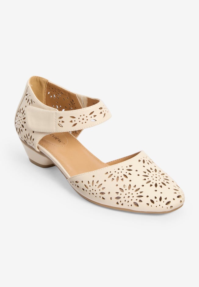 Get ready to step into style! With its adjustable, self-adhesive strap and detailed leather-like upper, this pump will be your new go-to.