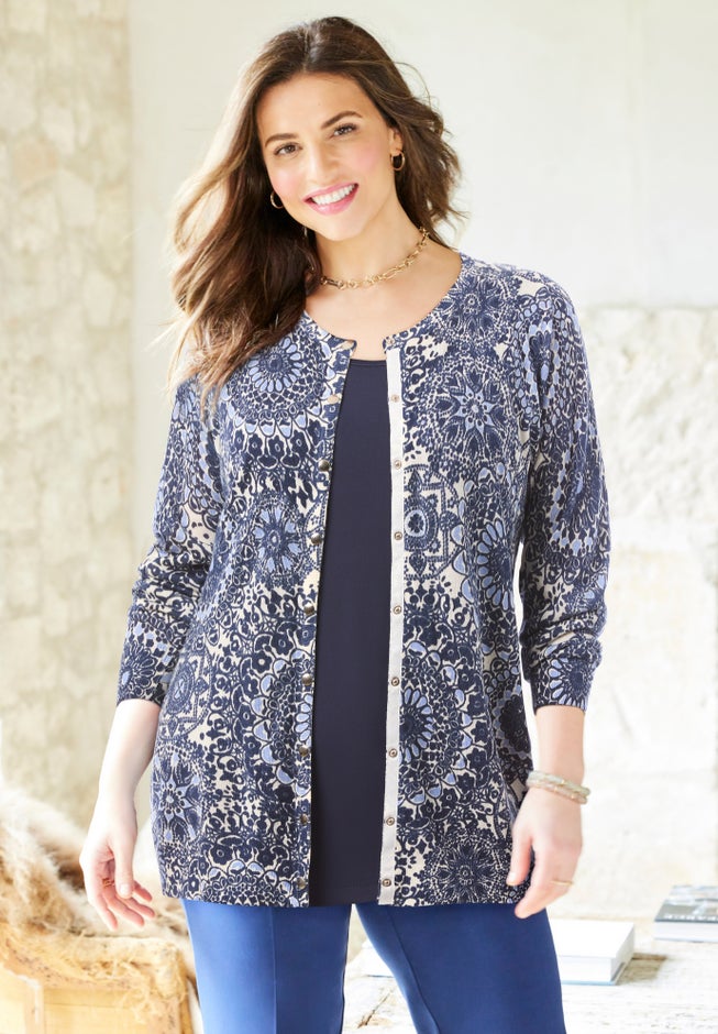 Item Number: 1069953Presenting, a timeless buttonfront sweater cardigan to complete every cool-weather outfit. Designed with care and made to last, this relaxed silhouette has rib details and grosgrain ribbon trim under the full button placket. The perfect top layer!