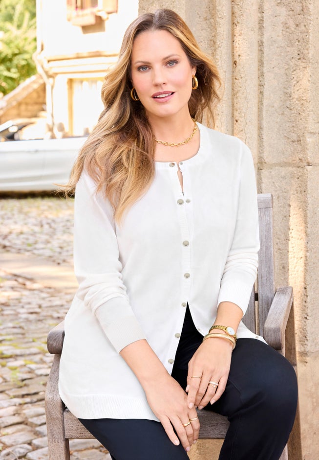 Item Number: 1069953Presenting, a timeless buttonfront sweater cardigan to complete every cool-weather outfit. Designed with care and made to last, this relaxed silhouette has rib details and grosgrain ribbon trim under the full button placket. The perfect top layer!