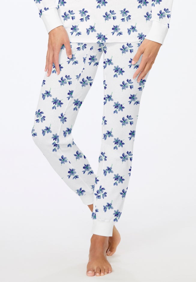 Softly textured, lightweight and comfy, our waffle-textured thermal pants are perfect for wearing alone at home or as an extra layer on cooler days. A stretch knit and elastic waistband fits perfectly to the body and makes for an easy-wearing style any time of year. Cozy up in this comfy style. Buy the matching top (Item Number: # 0012-56029) for the perfect cozy outfit.