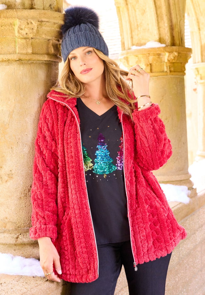 Item Number: 1061786Velvety soft, with a deep plush (almost furry) texture, this is the jacket you'll reach for again and again. With its stand-up collar, cozy front slant pockets and front zip to chase away the chill, this might just become your cold-weather favorite.